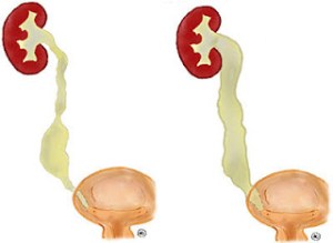 La siguiente información lo ayudará a comprender mejor sobre esta enfermedad. Normalmente, la orina fluye desde los riñones a través de los uréteres en una única dirección hasta llegar a la vejiga. Existe una «válvula de paso» que evita que la orina retroceda y regrese a los riñones. El RVU es una enfermedad en la que la orina viaja en sentido contrario desde la vejiga hacia los riñones y puede afectar a uno o a los dos uréteres.